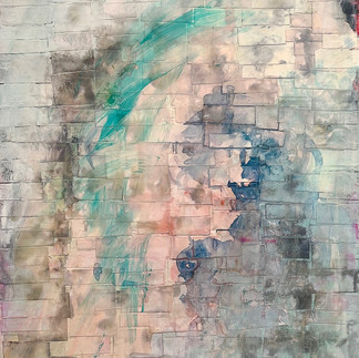 I installed my work primarily on the upper level which is an intimate space. My work is based on intimacy, identity, boundaries, emotions, layers and I wanted to invite guests into that experience. In my studio, guests could write a childhood memory and I liked that they did not write their names. The memory then becomes universal in a way. My large multimedia pieces were in the hallways and viewers were forced to consider them from close-up as opposed to from a distance. Generally viewers in galleries will have more space between them and a large painting.